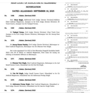इलाहाबाद हाईकोर्ट ने 18 प्रदेश की न्यायपालिका में बड़ा प्रशासनिक फेरबदल किया है। कोर्ट ने उत्तर प्रदेश के विभिन्न ज़िलों...