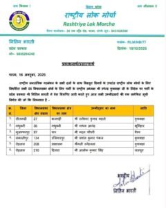 बिहार विधानसभा चुनाव 2025 के लिए राष्ट्रीय लोक मोर्चा (RLM) ने अपने सभी छह उम्मीदवारों की सूची जारी कर दी...