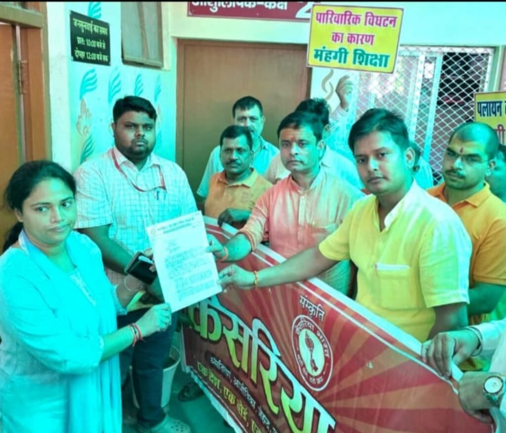 पिंडरा तहसील में महंगी शिक्षा तथा ‘एक देश, एक बोर्ड, एक फीस, एक पाठ्यक्रम’ के लिए शत ( 108 ) बार श्री हनुमान चालीसा पाठ व सभा किया गया। धरोहर संरक्षण सेवा संगठन के प्रमुख संयोजक कृष्णानंद पाण्डेय के नेतृत्व में उपजिलाधिकारी पिंडरा प्रतिभा मिश्रा को प्रधानमंत्री के नाम ज्ञापन दिया । उन्होंने कहाकि महंगी शिक्षा के कारण समाज में पारिवारिक विघटन, जनसंख्या असन्तुलन, पलायन आदि गम्भीर समस्याएं बढ़ रही हैं। कार्यक्रम का संयोजन करने वाले केसरिया भारत के प्रदेश अध्यक्ष गौरीश सिंह ने शिक्षा में असमानता के कारण हो रहे अभिवावकों पर पड़ने वाले आर्थिक बोझ पर चर्चा की। संगठन के प्रदेश संयोजक गौरव मिश्र ने कहाकि आज की शिक्षा व्यवस्था में पढ़कर बच्चे संस्कारों से दूर हो रहे हैं और इसका दुष्परिणाम यह है कि आज भारत में वृद्धाश्रम की संख्या बढ़ती जा रही है। केसरिया भारत के जिलाध्यक्ष अविनाश मिश्र ने कहाकि जब तक पूरे देश में एक बोर्ड, एक फीस व एक पाठ्यक्रम की व्यवस्था लागू नहीं हो जाती तब तक ये अभियान चलता रहेगा।