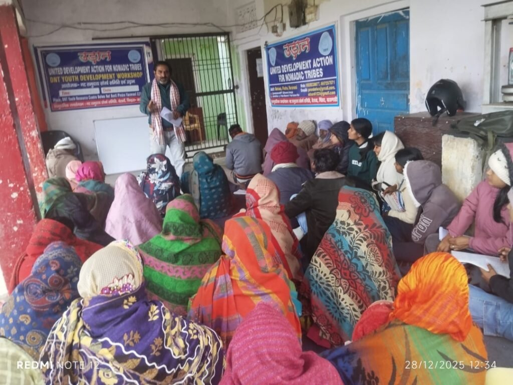 DNT यूथ रिसोर्स सेंटर में शनिवार को युवा नेतृत्व प्रशिक्षण कार्यशाला का आयोजन किया गया। इस कार्यक्रम का उद्देश्य विमुक्त (DNT), दलित एवं मुसहर समुदाय के महिला–पुरुष युवाओं को नेतृत्व क्षमता, संवैधानिक अधिकारों तथा ग्राम पंचायत स्तर पर सक्रिय भागीदारी के लिए सशक्त बनाना रहा।