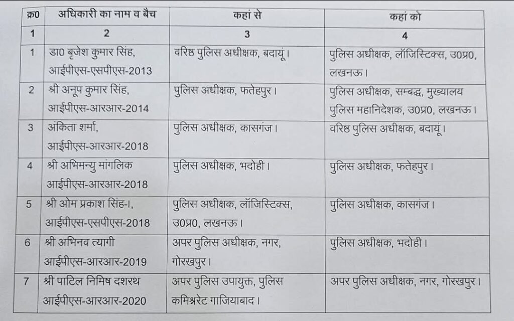 प्रदेश सरकार के इस फैसले को प्रशासनिक संतुलन बनाए रखने और कानून-व्यवस्था को और अधिक प्रभावी बनाने की दिशा में अहम कदम माना जा रहा है। नई तैनाती पाने वाले अधिकारियों के सामने अपने-अपने जिलों में अपराध नियंत्रण और कानून-व्यवस्था को मजबूत बनाए रखने की बड़ी जिम्मेदारी होगी।
