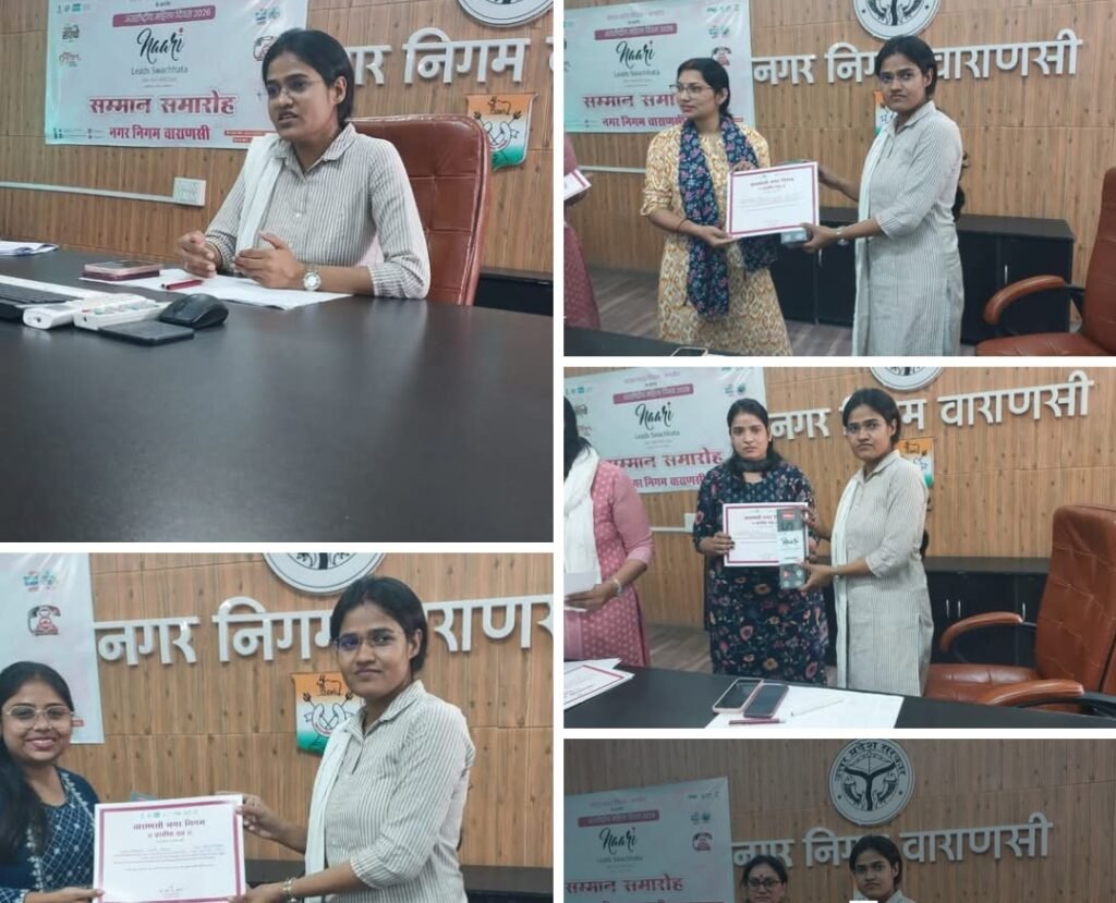 वाराणसी। अंतर्राष्ट्रीय महिला दिवस के अवसर पर स्वच्छ भारत मिशन (नगरीय) के तहत नगर निगम सभागार में विशेष सम्मान समारोह का आयोजन किया गया। ‘नारी लीड्स स्वच्छता’ (8 से 14 मार्च) अभियान के अंतर्गत होम कंपोस्टिंग और स्वच्छता के क्षेत्र में उत्कृष्ट योगदान देने वाली 82 महिलाओं को सम्मानित किया गया।