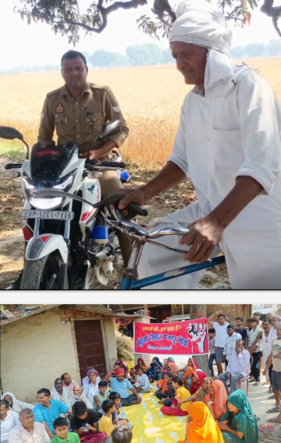 लल्लापुर में गेहूं की कटाई कर रहे किसान नेता रामजी सिंह को खेत से ही हिरासत में लेकर उनके घर पर निगरानी में रखा गया।